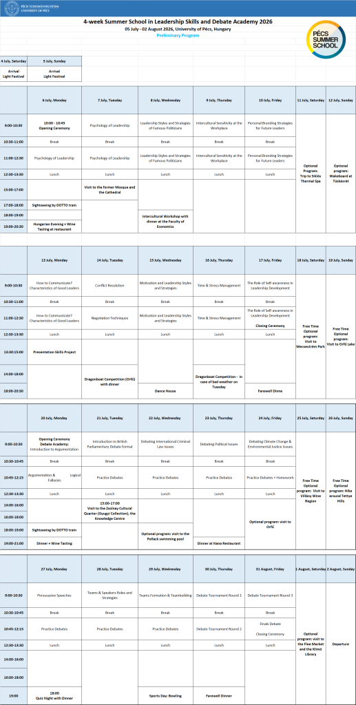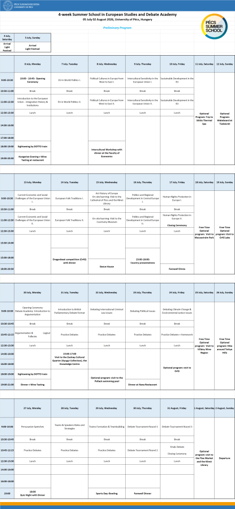 Dates: July 4–18 (European Studies) + July 19–August 2 (Debate Academy)