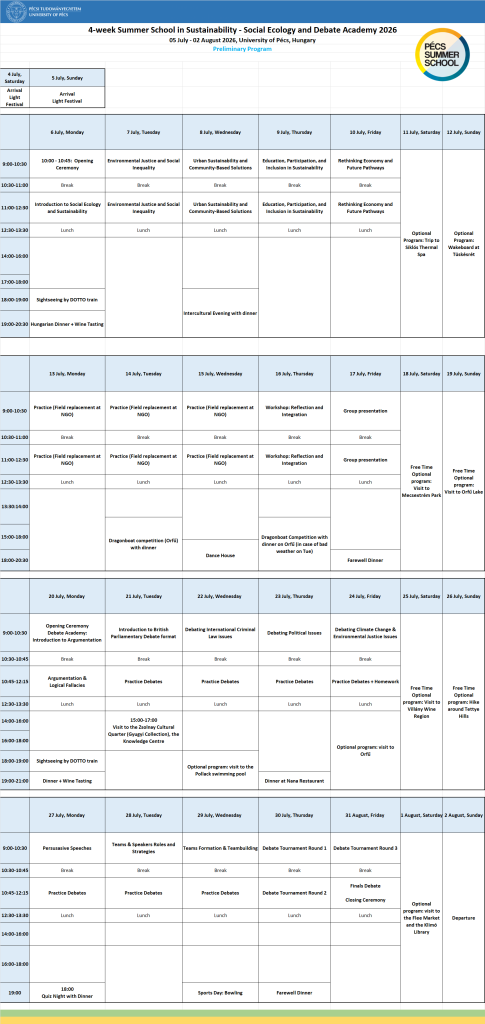 Dates: July 4–18 (Sustainability) + July 19–August 2 (Debate Academy)