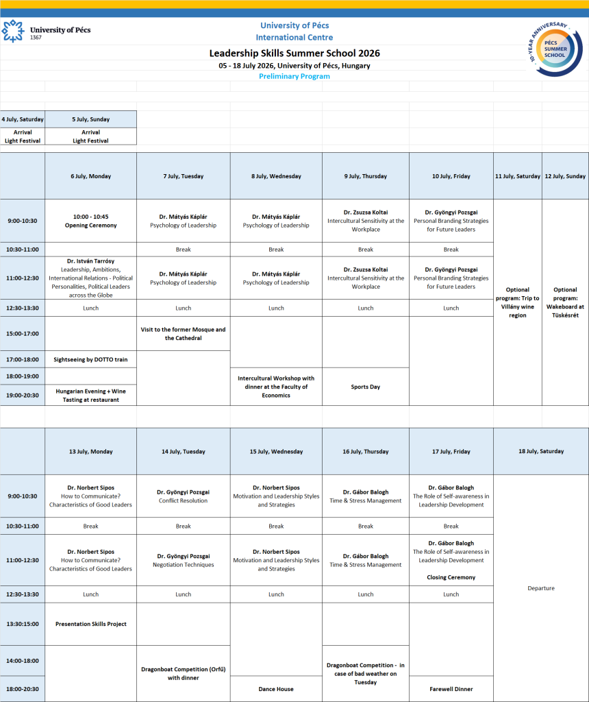 Application fee: Secure your place by paying 100 EUR application fee that will be deducted from your overall program fee of 1050 EUR. You can make your payment through our online application platform (apply.pte.hu)